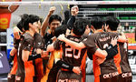 [OSEN=안산, 김성락 기자] 17일 오후 경기 안산시 상록수체육관에서 도드람 2024-2025 프로배구 남자부 OK 저축은행과 우리카드의 경기가 열렸다.이날 경기는 OK 저축은행이 우리카드를 상대로 세트스코어 3-0(25-23. 25-17, 25-23) 셧아웃