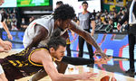 [OSEN=창원, 이석우 기자] 28일 창원 체육관에서 2024-2025 KCC 프로농구 창원 LG와 수원 KT의 경기가 열렸다. 6연승 LG와 3연승 KT가 연승을 이어가기 위해 맞대결을 펼친다.창원 LG 칼 타마요가 수원 KT 레이션 해먼즈의 마크를 피해 역전