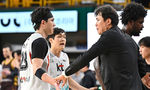 [OSEN=창원, 이석우 기자] 28일 창원 체육관에서 2024-2025 KCC 프로농구 창원 LG와 수원 KT의 경기가 열렸다. 6연승 LG와 3연승 KT가 연승을 이어가기 위해 맞대결을 펼친다.수원 KT 송영진 감독이 4쿼터 역전에 성공한 후 박준영과 하이