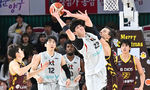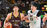[OSEN=창원, 이석우 기자] 28일 창원 체육관에서 2024-2025 KCC 프로농구 창원 LG와 수원 KT의 경기가 열렸다. 6연승 LG와 3연승 KT가 연승을 이어가기 위해 맞대결을 펼친다.창원 LG 전성현이 수원 KT 한희원의 마크를 피해 골밑슛을 시도