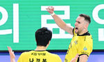 [OSEN=인천, 최규한 기자] 29일 오후 인천 계양체육관에서 ‘도드람 2024-2025 V-리그’ 남자부 대한항공과 KB손해보험의 경기가 열렸다.방문팀 KB손해보험이 3-2(15-25 17-25 25-17 25-19 15-12)로 짜릿한 역전승을 거뒀다.5세트, KB손해보험 황