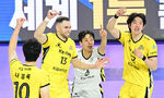 [OSEN=인천, 최규한 기자] 29일 오후 인천 계양체육관에서 ‘도드람 2024-2025 V-리그’ 남자부 대한항공과 KB손해보험의 경기가 열렸다.방문팀 KB손해보험이 3-2(15-25 17-25 25-17 25-19 15-12)로 짜릿한 역전승을 거뒀다.승리를 확정지은 KB손