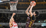 [OSEN=창원, 이석우 기자] 1일 창원 체육관에서 2024-2025 KCC 프로농구 창원 LG와 서울 SK의 경기가 열렸다. 2025년 첫 경기에서 LG가 9연승에 도전한다.창원 LG 양준석이 서울 SK 자밀 워니의 마크를 피해 골밑슛을 시도하고 있다. 2025.01.0