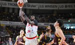 [OSEN=창원, 이석우 기자] 1일 창원 체육관에서 2024-2025 KCC 프로농구 창원 LG와 서울 SK의 경기가 열렸다. 2025년 첫 경기에서 LG가 9연승에 도전한다.서울 SK 자밀 워니가 창원 LG 대릴 먼로의 마크를 피해 골밑슛을 시도하고 있다. 2025.0