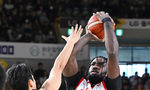 [OSEN=창원, 이석우 기자] 1일 창원 체육관에서 2024-2025 KCC 프로농구 창원 LG와 서울 SK의 경기가 열렸다. 2025년 첫 경기에서 LG가 9연승에 도전한다.서울 SK 자밀 워니가 창원 LG 대릴 먼로의 마크를 피해 골밑슛을 시도하고 있다. 2025.0
