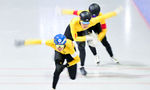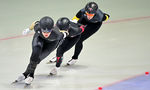 [OSEN=태릉, 조은정 기자] 제106회 전국동계체체육대회(동계체전) 스피드스케이팅 남자 대학부 8주 팀추월 경기가 17일 태릉국제스케이트장에서 열렸다.단국대학교가 질주하고 있다. 2025.01.17 /cej@osen.co.kr