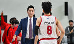 [OSEN=울산, 이석우 기자] 23일 울산 동천체육관에서 2024-2025 KCC 프로농구 울산 현대모비스와 서울 SK의 경기가 열렸다. 2위 현대모비스가 9연승 신바람 낸 SK와 네 번째 맞대결한다.서울 SK 전희철 감독이 안영준과 하이파이브를 하