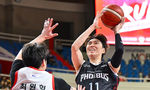 [OSEN=울산, 이석우 기자] 23일 울산 동천체육관에서 2024-2025 KCC 프로농구 울산 현대모비스와 서울 SK의 경기가 열렸다. 2위 현대모비스가 9연승 신바람 낸 SK와 네 번째 맞대결한다.울산 현대모비스 신민석이 골을 성공시키고 미구