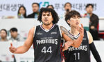 [OSEN=울산, 이석우 기자] 23일 울산 동천체육관에서 2024-2025 KCC 프로농구 울산 현대모비스와 서울 SK의 경기가 열렸다. 2위 현대모비스가 9연승 신바람 낸 SK와 네 번째 맞대결한다.울산 현대모비스 한호빈이 서울 SK 최부경의 마크