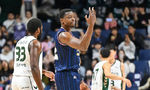 [OSEN=부산, 이석우 기자] 26일 부산 사직체육관에서 2024-2025 KCC 프로농구 부산 KCC와 원주 DB의 경기가 열렸다.시즌 도중 트레이드로 변화를 택한 KCC와 DB가 4라운드 맞대결을 치른다.원주 DB 서민수가 알바노를 보며 엄지척을 하고