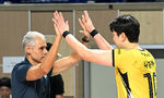 [OSEN=장충, 이대선 기자] KB손해보험이 26일 장충체육관에서 열린 서울 우리카드와 경기에서 세트스코어 3-0(25-23/25-23/25-21)으로 이겼다.경기 종료 후 KB손해보험 나경복이 레오나르도 아폰소 감독과 승리의 기쁨을 나누고 있다. 2025