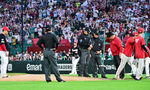 [OSEN=수원, 조은정 기자]21일 오후 수원 KT위즈파크에서 2025 신한 SOL Bank KBO리그 KT 위즈와 NC 다이노스의 경기가 열렸다.이날 홈팀 KT의 선발투수는 오원석, 방문팀 NC는 목지훈이 나선다.8회말 1사 만루 NC 임정호가 KT 김민혁에게 몸