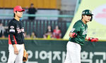 [OSEN=수원, 조은정 기자]21일 오후 수원 KT위즈파크에서 2025 신한 SOL Bank KBO리그 KT 위즈와 NC 다이노스의 경기가 열렸다.이날 홈팀 KT의 선발투수는 오원석, 방문팀 NC는 목지훈이 나선다.8회말 1사 만루 NC 배재환이 KT 허경민에게 몸