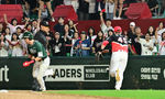 [OSEN=인천, 박준형 기자] 21일 오후 인천 SSG랜더스필드에서 ‘2025 신한 SOL BANK KBO리그’ SSG 랜더스와 KIA 타이거즈의 경기가 진행됐다.이날 SSG는 김광현을, KIA는 양현종을 선발투수로 내세웠다.연장11회말 무사 1루 SSG 오태곤의 타