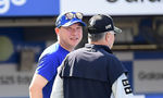 [OSEN=수원, 이후광 기자] 트레이드로 팀을 맞바꾼 임준형(KT 위즈)과 천성호(LG 트윈스)의 맞대결이 비로 인해 하루 연기됐다.25일 오후 6시 30분 열릴 예정이었던 2025 신한 SOL뱅크 KBO리그 KT 위즈와 LG 트윈스의 시즌 7번째 맞대결이