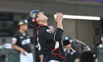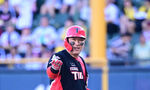 [OSEN=부산, 이석우 기자] 29일 부산 사직야구장에서 2025 신한 SOL 뱅크 KBO 리그 롯데 자이언츠와 KT 위즈의 경기가 열렸다. 홈팀 롯데는 박세웅이, 방문팀 KT는 쿠에바스가 선발 출전했다.KT 위즈 강현우가 5회말 1사 1,2루 롯데 자이언