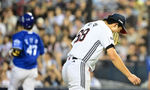 [OSEN=잠실, 지형준 기자] 1일 오후 서울 잠실구장에서 ‘2025 신한 SOL Bank KBO리그’ 두산 베어스와 삼성 라이온즈의 경기가 열렸다.두산은 최민석, 삼성은 아리엘 후라도가 선발로 나섰다.7회초 1사 1,3루에서 두산 최민석이 삼성 강
