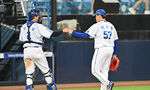[OSEN=잠실, 지형준 기자] 4일 오후 서울 잠실구장에서 ‘2025 신한 SOL Bank KBO리그’ 두산 베어스와 KT 위즈의 경기가 열렸다.두산은 잭로그, KT는 오원석이 선발로 나섰다.6회말 수비를 마친 KT 오원석이 동료선수들과 하이파이브를