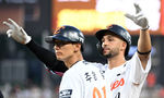 [OSEN=대전, 이대선 기자] 8일 오후 대전 한화생명볼파크에서 2025 신한 SOL Bank KBO리그 한화 이글스와 KIA 타이거즈의 경기가 열렸다.한화는 문동주, KIA는 윤영철을 선발로 내세웠다.3회말 무사 1루에서 한화 리베라토가 우전 안타를