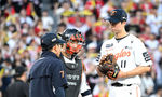 [OSEN=대전, 이대선 기자] 9일 오후 대전 한화생명볼파크에서 2025 신한 SOL Bank KBO리그 한화 이글스와 KIA 타이거즈의 경기가 열렸다.한화는 문동주, KIA는 양현종 선발로 내세웠다.4회초 1사 2루에서 한화 엄상백이 마운드를 내려가
