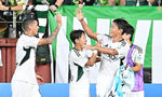 [OSEN=포항, 이석우 기자] 19일 포항 스틸야드에서 하나은행 K리그1 2025 포항 스틸러스와 전북 현대의 경기가 열렸다.포항으로 이적한 기성용이 포항 유니폼을 입고 첫 출전한다.전북 현대 선수들이 역전에성공하고 환호하고 있다
