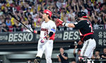 [OSEN=잠실, 조은정 기자]24일 오후 서울 잠실야구장에서 2025 신한 SOL Bank KBO리그 두산 베어스와 한화 이글스의 경기가 열렸다.이날 두산은 최승용, 한화는 폰세를 선발로 내세웠다.7회말 1사 1루 두산 김재환이 역전 투런 홈런을 날