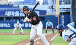 [OSEN=창원, 이석우 기자] 24일 창원NC파크에서 2025 신한 SOL 뱅크 KBO 리그 NC 다이노스와 KT 위즈의 경기가 열렸다. 홈팀 NC는 목지훈이, 방문팀 KT는 배제성이 선발 출전했다. KT 위즈 이정훈이 1회초 1사 1,2루 허경민의 좌익수 앞 안타