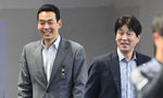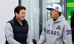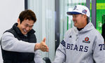 [OSEN=미야자키(일본), 지형준 기자] 27일 일본 미야자키 미야코노조 구장에서 두산 베어스가 훈련을 가졌다. 이날 예정된 일본프로야구 지바 롯데와의 구춘대회 경기는 우천으로 취소됐다.두산 김원형 감독이 안권수와 인사를