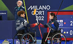 [OSEN=조은정 기자]휠체어컬링 백혜진(오른쪽)과 이용석이 10일(현지시간) 이탈리아 코르티나담페초 컬링 올림픽 스타디움에서 열린 2026 밀라노 코르티나 패럴림픽 휠체어컬링 믹스더블 미국과의 준결승전에서 하이파이브를 하