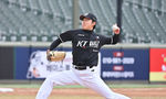 [OSEN=부산, 이석우 기자] 12일 부산 사직야구장에서 2026 신한 SOL KBO 리그 롯데 자이언츠와 KT 위즈의 시범경기가 열렸다. 이날 부산 사직과 이천, 대전, 광주, 마산 5개구장에서 막을 올렸다.KT 위즈 전용주가 역투하고 있다. 2026.03.12