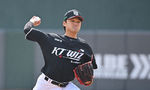 [OSEN=부산, 이석우 기자] 12일 부산 사직야구장에서 2026 신한 SOL KBO 리그 롯데 자이언츠와 KT 위즈의 시범경기가 열렸다. 이날 부산 사직과 이천, 대전, 광주, 마산 5개구장에서 막을 올렸다.KT 위즈 선발 투수 주권이 역투하고 역투