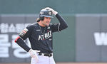 [OSEN=부산, 이석우 기자] 12일 부산 사직야구장에서 2026 신한 SOL KBO 리그 롯데 자이언츠와 KT 위즈의 시범경기가 열렸다. 이날 부산 사직과 이천, 대전, 광주, 마산 5개구장에서 막을 올렸다.KT 위즈 김현수가 1회초 1회초 1사 2루 힐