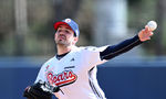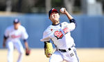 [OSEN=이천, 이대선 기자] 13일 경기도 이천 베어스파크에서 ‘2026 신한 SOL KBO리그’ 시범경기 두산 베어스와 키움 히어로즈의 경기가 열렸다.두산은 잭로그, 키움은 유토를 선발 투수로 내세웠다.경기에 앞서 두산 홍원기 코치와