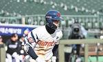 [OSEN=부산, 이석우 기자] 13일 부산 사직야구장에서 2026 신한 SOL KBO 리그 롯데 자이언츠와 KT 위즈의 시범경기가 열렸다. 홈팀 롯데는 쿄야마가 방문팀 KT는 보쉴리가 선발 출전했다.롯데 자이언츠 김한홀이 6회말 2사 1,2루 중견수