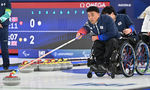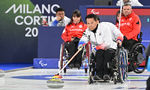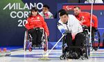 [OSEN=조은정 기자]휠체어컬링 남봉광(가운데)이 12일(현지시간) 이탈리아 코르티나담페초 컬링 올림픽 스타디움에서 열린 2026 밀라노 코르티나 패럴림픽 휠체어컬링 혼성 4인조 캐나다와의 예선전에서 스톤을 힘차게 밀고 있다.