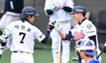 [OSEN=부산, 이석우 기자] 15일 부산 사직야구장에서 2026 신한 SOL KBO 리그 롯데 자이언츠와 LG 트윈스의 시범경기가 열렸다. 홈팀 롯데는 비슬리가, 방문팀 LG는 이민호가 선발 출전했다.롯데 자이언츠 윤동희가 4회말 1사 1,2루 LG 트
