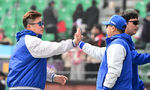[OSEN=창원, 이석우 기자] 16일 창원NC파크에서 2026 신한 SOL KBO 리그 시범경기 NC 다이노스와 KIA 타이거즈의 경기가 열린다.정훈 해설위원이 경기 전 NC 다이노스 서재응 코치와 얘기를 하고 있다. / foto0307@osen.co.kr