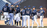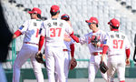 [OSEN=인천, 최규한 기자] 17일 인천 SSG랜더스필드에서 ‘2026 신한 SOL KBO리그’ 시범경기 SSG 랜더스와 삼성 라이온즈의 경기가 열렸다.이날 경기는 홈팀 SSG가 8-4로 승리했다.경기를 마치고 승리한 SSG 선수들이 인사를 나누고 있다.