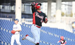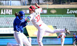 [OSEN=대전, 박준형 기자] 17일 오후 대전 한화생명볼파크에서 2026 신한 SOL KBO 리그 시범경기 한화 이글스와 두산 베어스의 경기가 진행됐다.전날 경기에서는 두산이 한화를 상대로 8-4 승리를 거뒀다.9회초 2사 3루 두산 조수행이