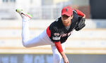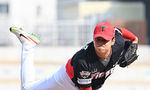 [OSEN=창원, 이석우 기자] 17일 창원NC파크에서 2026 신한 SOL KBO 리그 시범경기 NC 다이노스와 KIA 타이거즈의 경기가 열렸다. 홈팀 NC는 테일러가, 방문팀 KIA는 양현종이 선발 출전했다. KIA 타이거즈 김시훈이 역투하고 있다. 2026.03.17