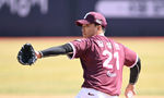 [OSEN=수원, 조은정 기자]19일 경기도 수원 KT위즈파크에서 ‘2026 신한 SOL KBO리그’ 시범경기 KT 위즈와 키움 히어로즈의 경기가 열렸다.KT는 선발 투수로 보쉴리를, 키움은 김윤하를 마운드에 올렸다.6회말 키움 김성진이 피칭을