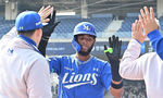 [OSEN=창원, 이석우 기자] 19일 창원NC파크에서 2026 신한 SOL KBO 리그 시범경기 NC 다이노스와 삼성 라이온즈의 경기가 열렸다. 홈팀 NC는 토다가, 방문팀 삼성은 이승현이 선발 출전했다. 삼성 라이온즈 디아즈가 4회초 1사 1루 우월
