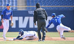[OSEN=창원, 이석우 기자] 19일 창원NC파크에서 2026 신한 SOL KBO 리그 시범경기 NC 다이노스와 삼성 라이온즈의 경기가 열렸다. 홈팀 NC는 토다가, 방문팀 삼성은 이승현이 선발 출전했다. NC 다이노스 신재인이 1회말 무사 1루 권희동