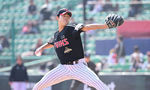 [OSEN=인천, 최규한 기자] 20일 인천 SSG랜더스필드에서 ‘2026 신한 SOL KBO리그’ 시범경기 SSG 랜더스와 LG 트윈스 경기가 열렸다.홈팀 SSG는 김민준, 방문팀 LG는 요니 치리노스를 선발로 내세웠다.6회말 마운드에 오른 LG 백승현이 힘