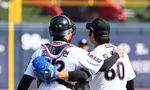 [OSEN=인천, 최규한 기자] 20일 인천 SSG랜더스필드에서 ‘2026 신한 SOL KBO리그’ 시범경기 SSG 랜더스와 LG 트윈스 경기가 열렸다.홈팀 SSG는 김민준, 방문팀 LG는 요니 치리노스를 선발로 내세웠다.7회초 마운드에 오른 SSG 투수 김현