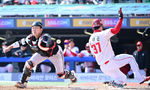 [OSEN=인천, 최규한 기자] 20일 인천 SSG랜더스필드에서 ‘2026 신한 SOL KBO리그’ 시범경기 SSG 랜더스와 LG 트윈스 경기가 열렸다.홈팀 SSG는 김민준, 방문팀 LG는 요니 치리노스를 선발로 내세웠다.6회초 1사 주자없는 상황 LG 이재원