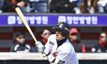 [OSEN=인천, 최규한 기자] 20일 인천 SSG랜더스필드에서 ‘2026 신한 SOL KBO리그’ 시범경기 SSG 랜더스와 LG 트윈스 경기가 열렸다.홈팀 SSG는 김민준, 방문팀 LG는 요니 치리노스를 선발로 내세웠다.3회초 2사 1루 상황 LG 신민재가 안타