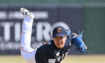 [OSEN=부산, 이석우 기자] 21일 부산 사직야구장에서 2026 신한 SOL KBO 리그 롯데 자이언츠와 한화 이글스의 시범경기가 열렸다. 홈팀 롯데는 로드리게스가, 방문팀 한화는 엄상백이 선발 출전했다.한화 이글스 황준서가 역투하고