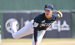 [OSEN=부산, 이석우 기자] 21일 부산 사직야구장에서 2026 신한 SOL KBO 리그 롯데 자이언츠와 한화 이글스의 시범경기가 열렸다. 홈팀 롯데는 로드리게스가, 방문팀 한화는 엄상백이 선발 출전했다.롯데 자이언츠 박준우가 역투하고