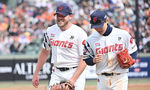 [OSEN=부산, 이석우 기자] 22일 부산 사직야구장에서 2026 신한 SOL KBO 리그 롯데 자이언츠와 한화 이글스의 시범경기가 열렸다. 홈팀 롯데는 비슬리가, 방문팀 한화는 에르난데스가 선발 출전했다.롯데 자이언츠 쿄야마가 6회초 1사